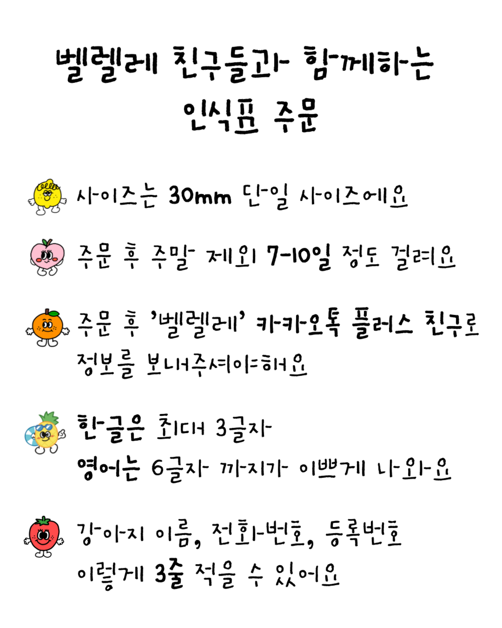 캐릭터가 워낙 다양해서 이름도 많으니까 잘 보고 주문해주세요!